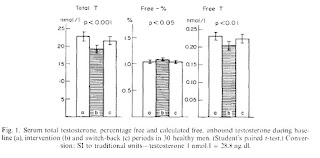 Изследване показва, че мъже, които минават от 40% мазнини в диетата (от които голяма част наситени), на 25% мазнини (от които много малко наситени), се наблюдава понижаване в нивата на свободен тестостерон в кръвта. Когато пак се върнат на предишното хранене с 40%, нивата на тестостерон отново се повишават. (картинката вдясно)